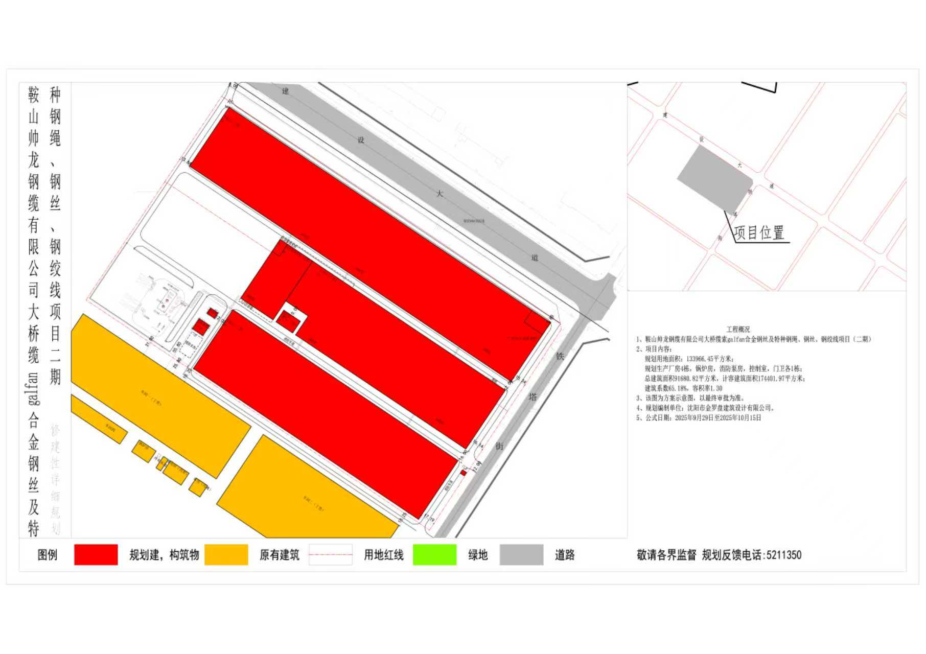 附件:鞍山帅龙钢缆有限公司大桥缆索galfan合金钢丝及特种钢绳、钢丝、钢绞线项目二期修建性详细规划图
