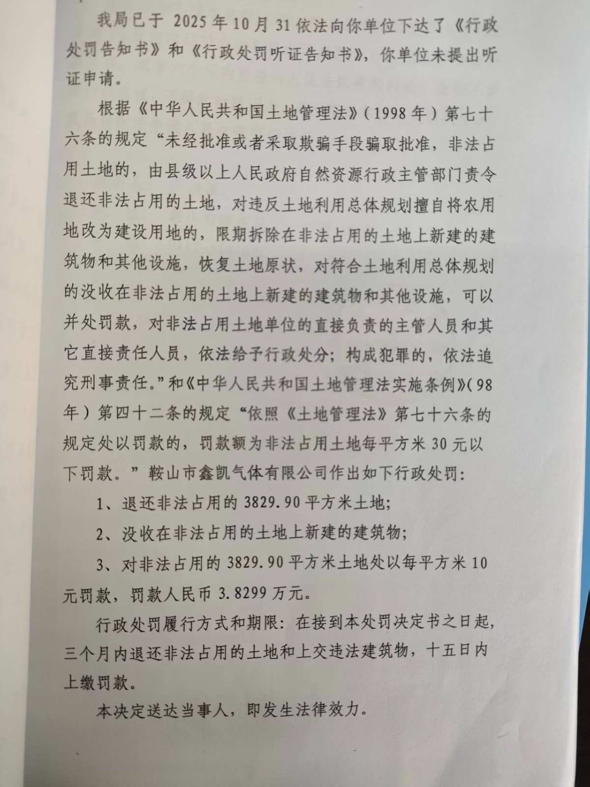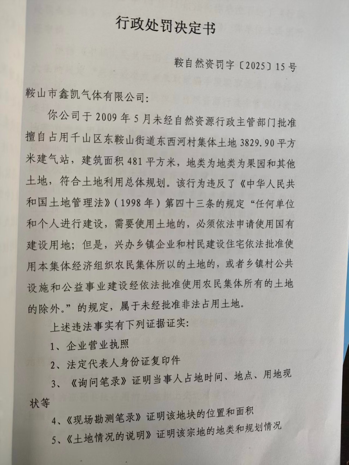 鞍自然资罚字[2025]15号