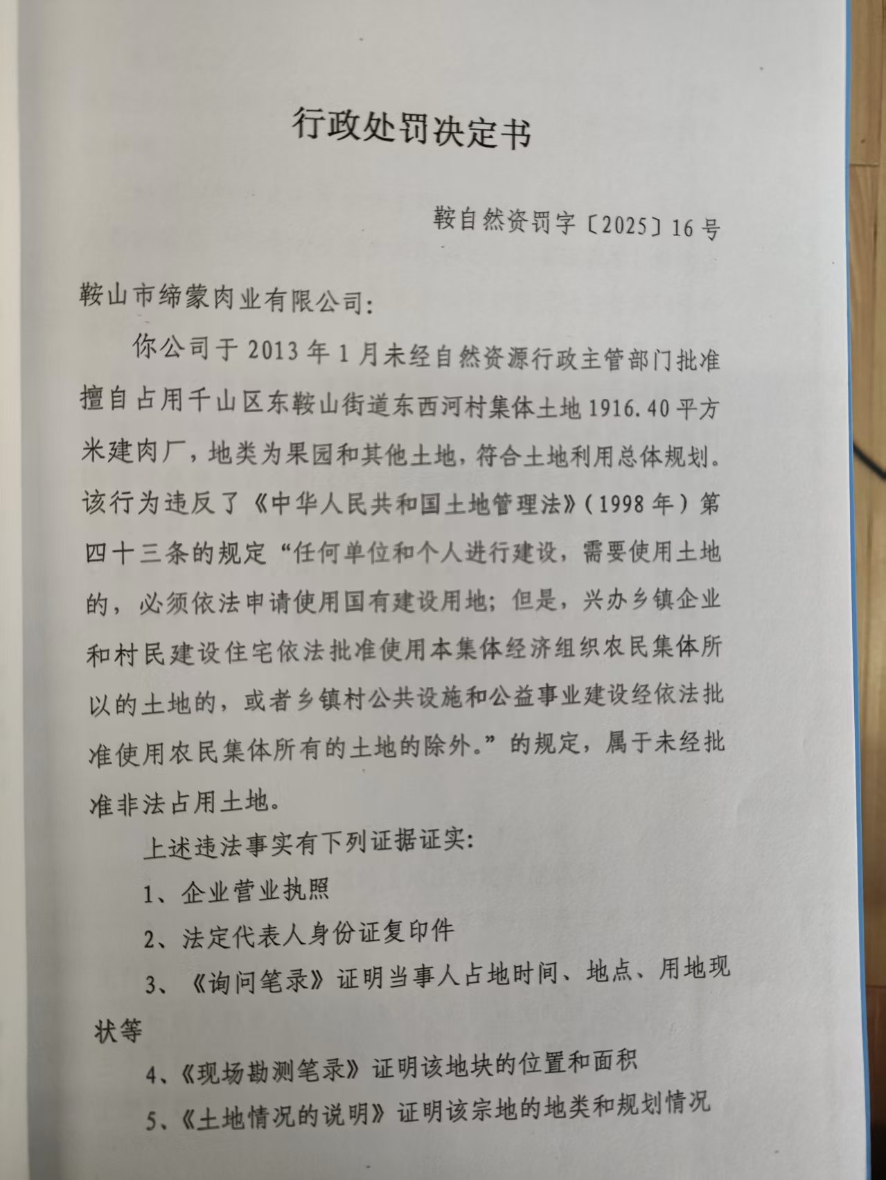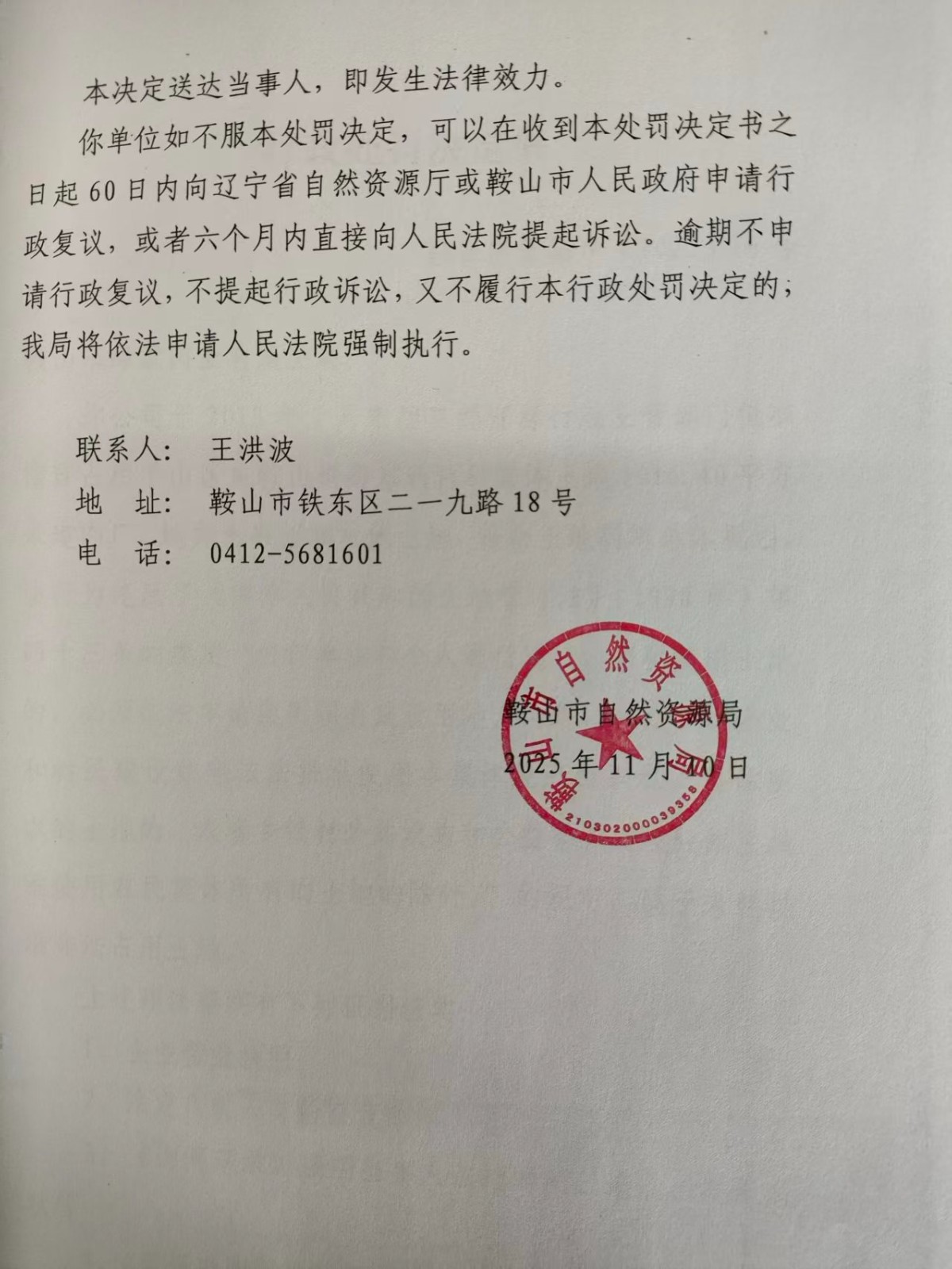 鞍自然资罚字[2025]16号