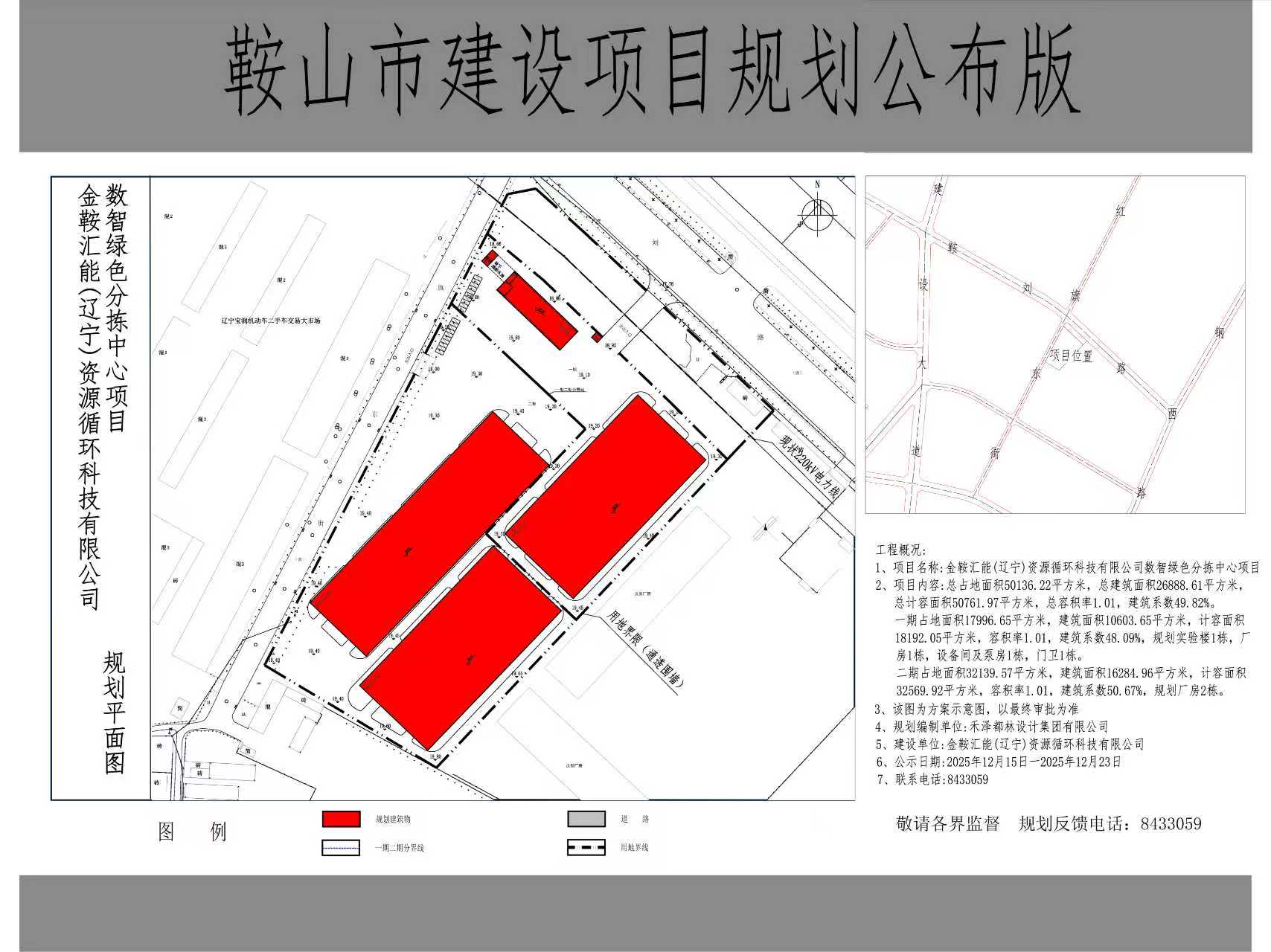 1、项目名称:金鞍汇能(辽宁)资源循环科技有限公司数智绿色分拣中心项目