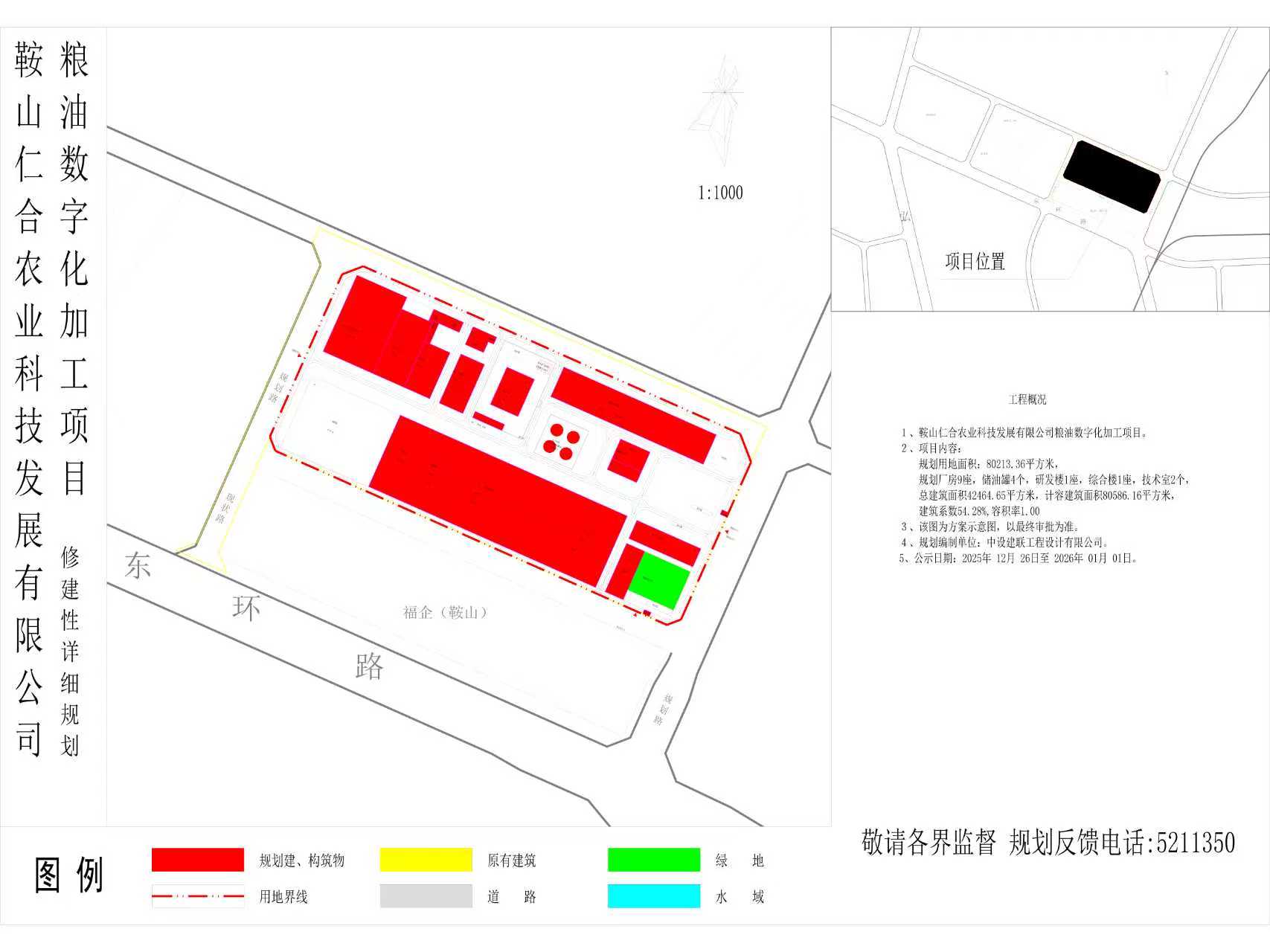 附件:鞍山仁合农业科技发展有限公司粮油数字化加工项目修建性详细规划图